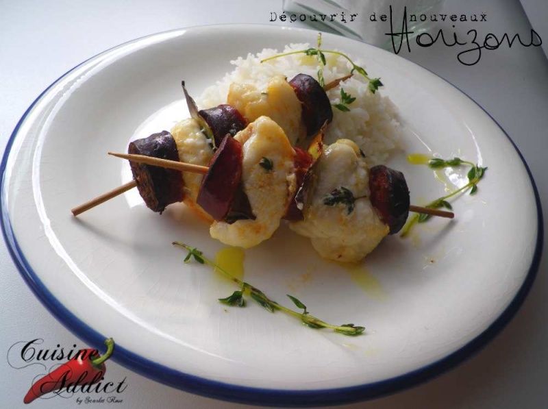 Voici une manière originale de déguster le poisson, en l'associant à du chorizo pour des brochettes savoureuses et légèrement épicées. À servir avec un riz basmati parfumé.