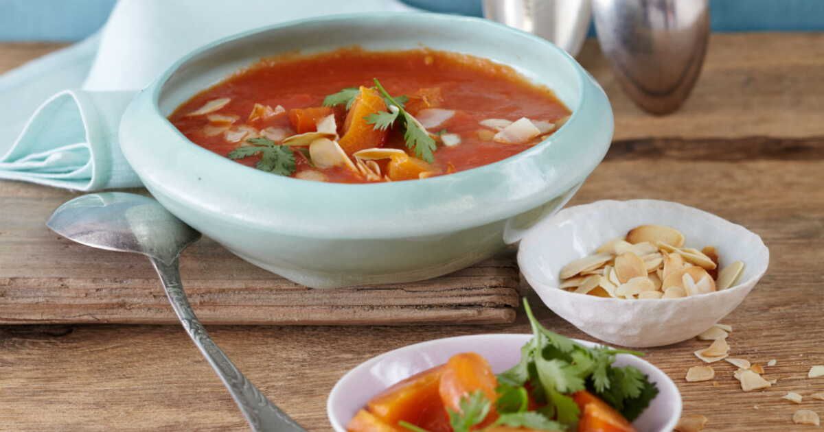 Ce gazpacho de tomates et abricots est une manière créative d'apporter une note sucrée-salée à un classique. La coriandre ajoute une profondeur de goût qui sublimera ce plat rafraîchissant.