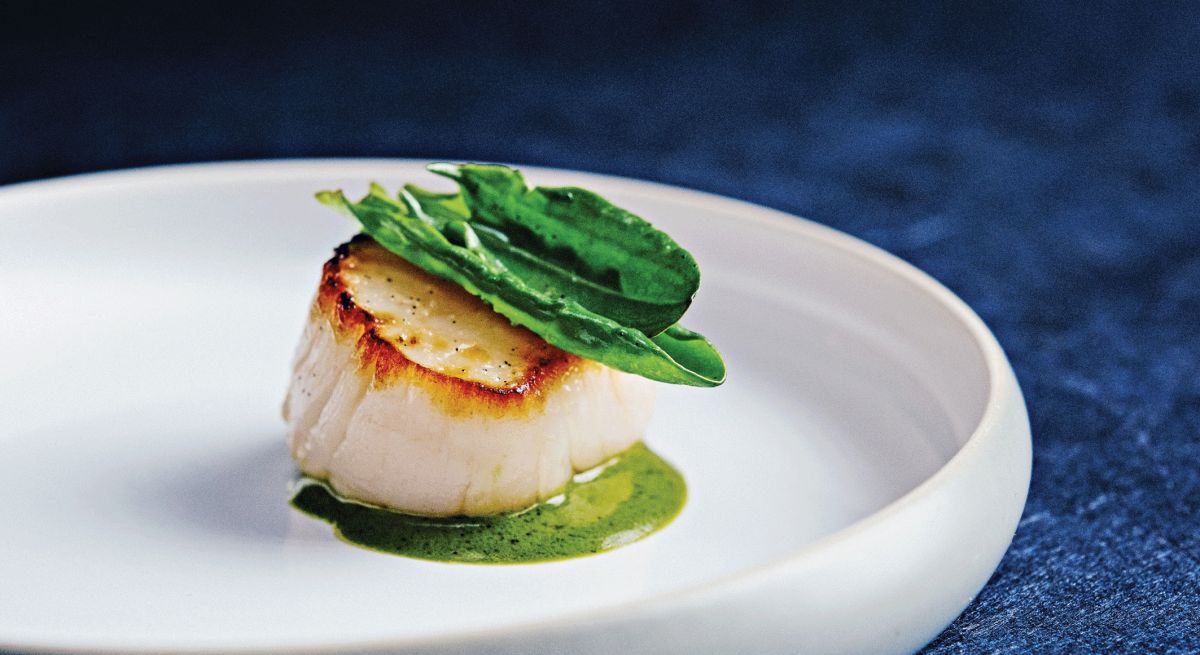 4. Réchauffez la purée d’oseille à feu doux. Juste avant de servir, salez les noix de Saint-Jacques des deux côtés et faites-les cuire dans une poêle légèrement huilée, environ 30 secondes de chaque côté, jusqu’à ce qu’elles soient nacrées à l’intérieur.