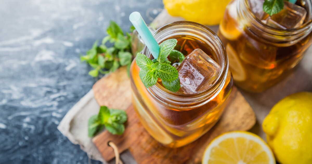 - Thé frappé à la menthe : Combinez du thé à la menthe, de la glace pilée et un splash de limonade.