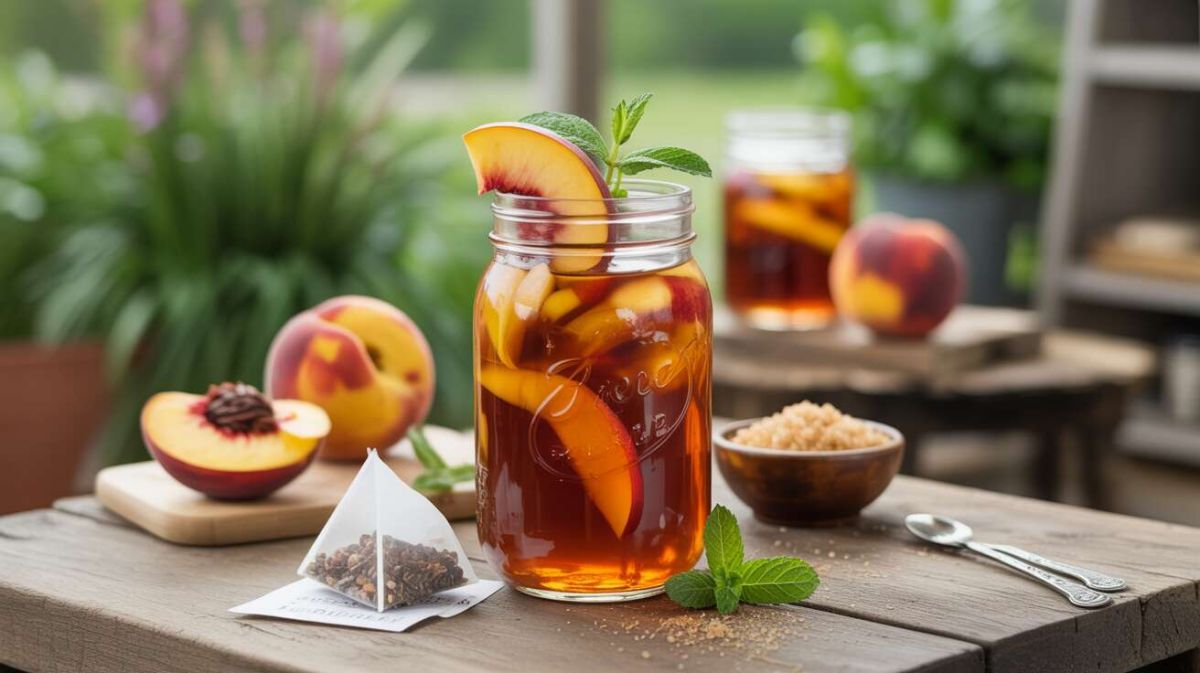 Le thé glacé tire ses racines des États-Unis, où il est extrêmement populaire. Cette recette à la pêche est une variante savoureuse qui évoque pleinement les parfums de l'été.